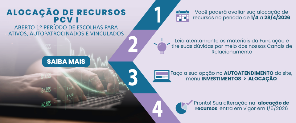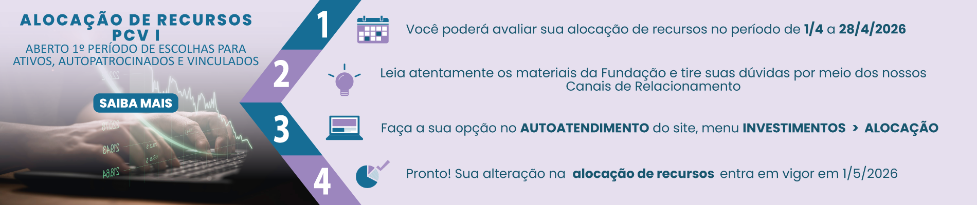 Plano TELOS de Contribuição Variável I – PCV I transforma disciplina, tempo e contribuição em uma reserva sólida para o futuro 27/03/2026ATUALIZAÇÃO SOBRE GESTOR DE INVESTIMENTOS DO FUNDO RENDA FIXA BAIXO RISCO I