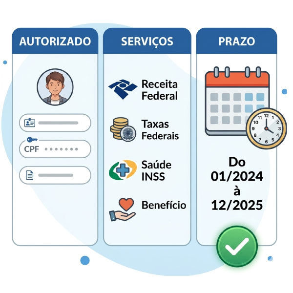 A procuração digital pode ser utilizada em diversos serviços do gov.br, como: