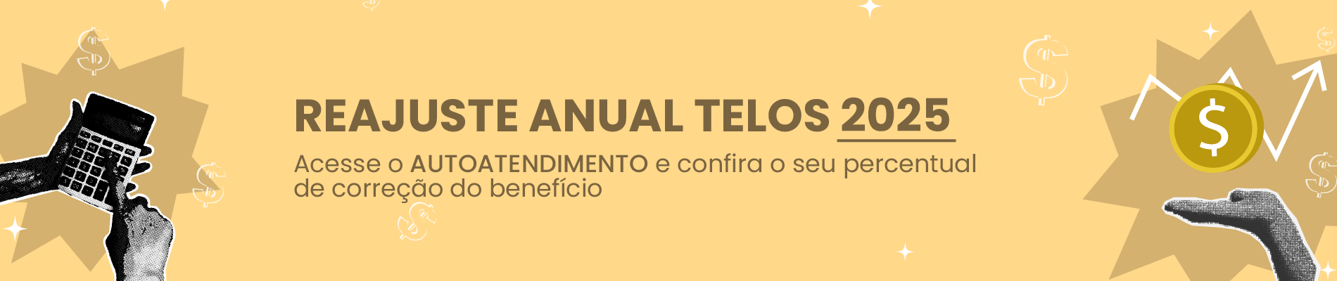 Assistidos do Plano TELOS Contribuição Variável I – PCV I na modalidade de Renda Mensal Vitalícia e os Assistidos do Plano de Benefício Definido – PBD já podem verificar no AUTOATENDIMENTO, de forma exclusiva, o valor percentual aplicado sobre o seu benefício TELOS conforme previsto nos Regulamentos dos Planos e opção pelo tipo de reajuste.